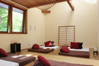 3名〜4名様でご利用いただけます。ハルニレテラスを見下ろす窓からは、川のせせらぎが届き、特別な体験を楽しむことができるお部屋です。